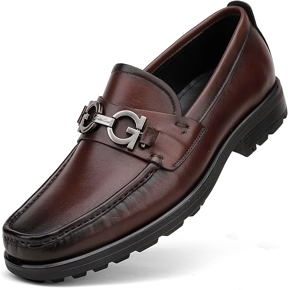 Men's Luxury Coffee Leather Penny Loafers, Classic Fashion Handmade Dress Shoes Casual Slip-on Loafer for Mens